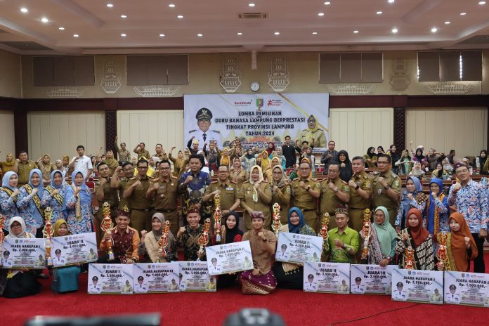 Hal tersebut disampaikan Pj. Gubernur Samsudin saat menghadiri penyerahan hadiah bagi para pemenang Lomba Pemilihan Guru Bahasa Lampung Berprestasi Tingkat Provinsi Lampung Tahun 2024, di Gedung Pusiban, Selasa (24/9/2024).
