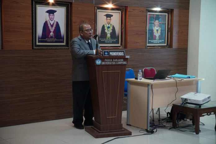 (Unila): Program Studi Doktor Ilmu Lingkungan, Fakultas Pascasarjana Multidisiplin Universitas Lampung (Unila) kembali meluluskan seorang doktor melalui sidang terbuka promosi doktor atas nama Muhamad Komarudin. Sidang diselenggarakan di Aula Pascasarjana Unila, Senin, 4 Agustus 2025.
