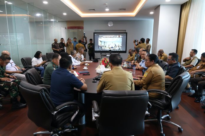 Jayapura, LGNews.com — Penjabat (Pj) Gubernur Papua Agus Fatoni menghadiri Rapat Koordinasi (Rakor) Kesiapan Pemungutan Suara Ulang (PSU) Pemilihan Gubernur dan Wakil Gubernur di Kabupaten/Kota se-Provinsi Papua. Kegiatan ini berlangsung secara hybrid melalui zoom meeting di Kantor Gubernur Papua, Jayapura, Papua, Selasa (05/08/2025).
