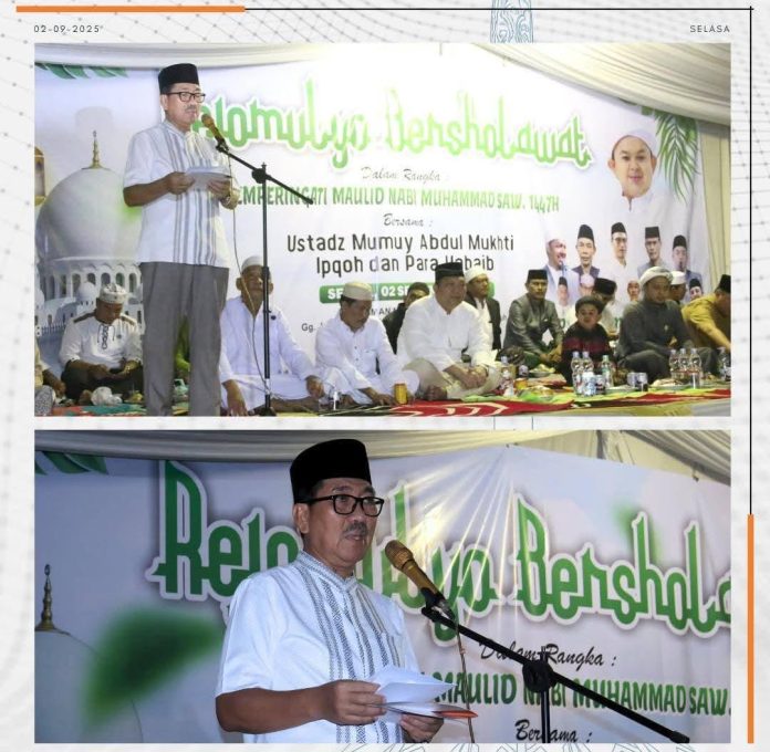 Dalam sambutannya, Bupati Hamartoni menyampaikan bahwa peringatan Maulid Nabi tidak hanya menjadi ajang seremonial, tetapi merupakan momentum penting untuk meneladani akhlak Rasulullah SAW.