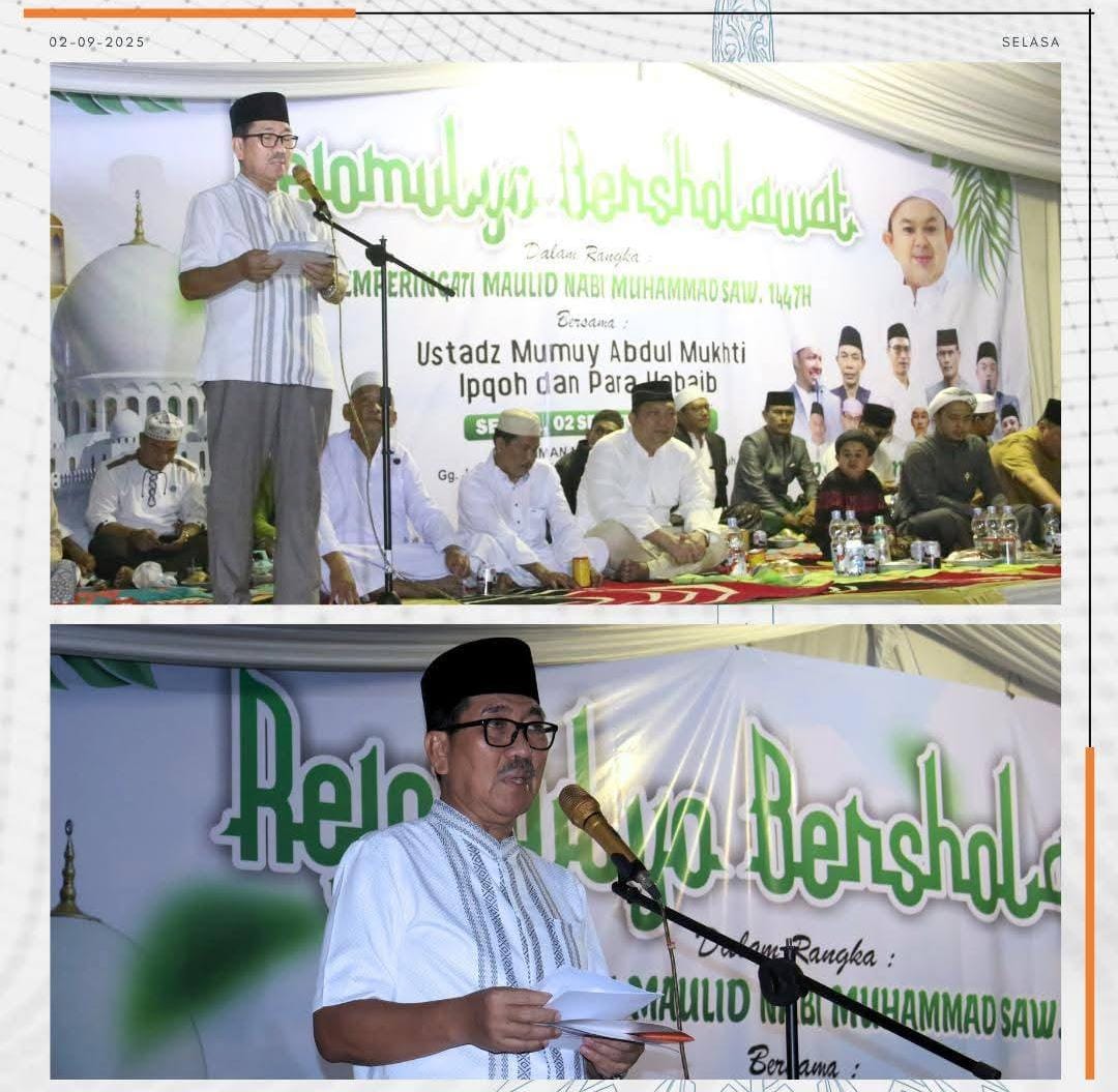 Bupati Lampung Utara, Dr. Ir. Hamartoni Ahadis, M.Si., menghadiri Peringatan Maulid Nabi Muhammad Shallallahu ‘Alaihi Wasallam 1447 H yang dirangkai dengan Gema Sholawat IFQOH Lampung Utara, Selasa (2/9/2025), bertempat di Mushola Al-Hikmah.