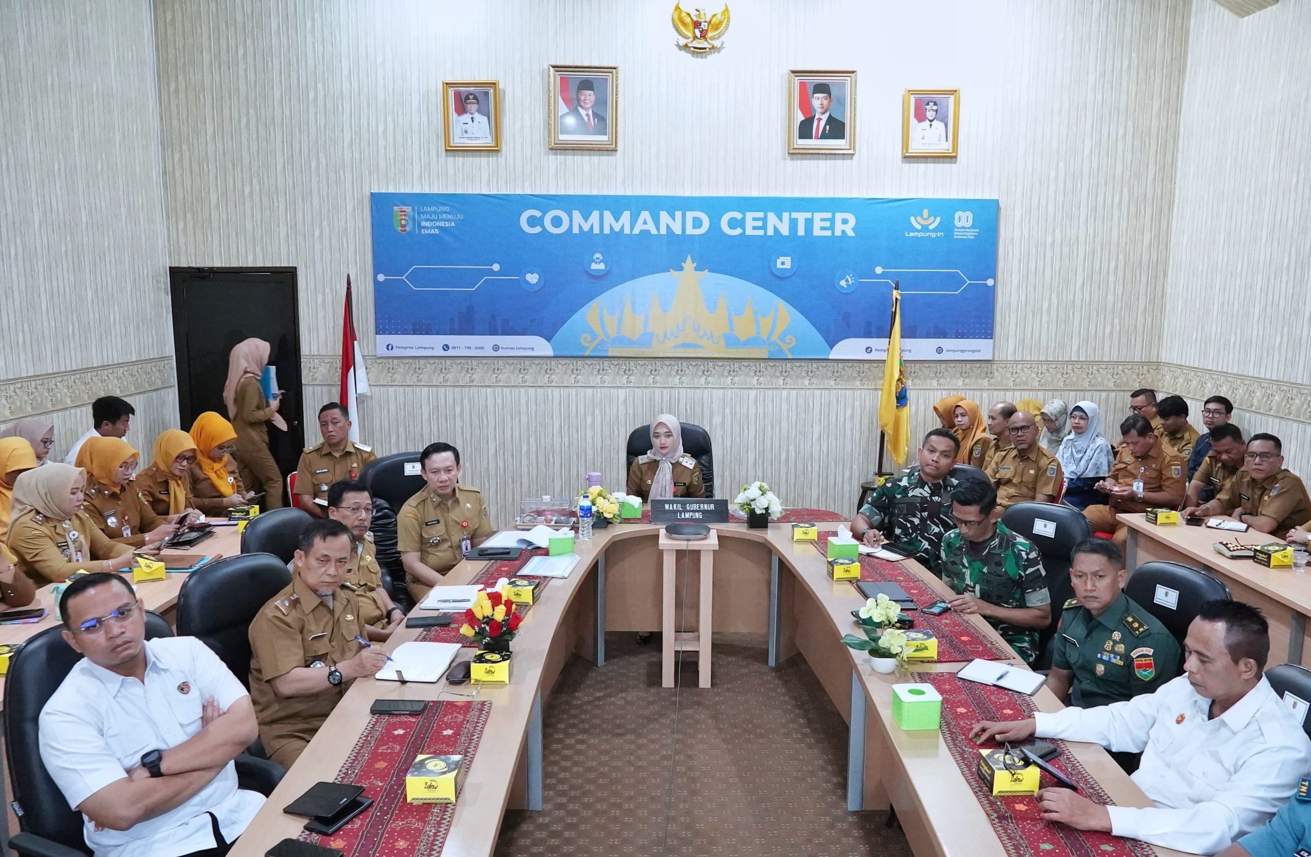 Bandar Lampung, LGNews.com —- Wakil Gubernur Lampung, Jihan Nurlela mengikuti Rapat Koordinasi Pengendalian Inflasi Daerah secara daring, di Ruang Command Center Lt. II Dinas Kominfotik Provinsi Lampung, Senin (8/9/2025).